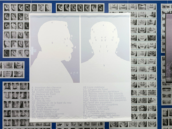 The title Portraits soufflés is a reference to the Spoken Portraits by Alphonse Bertillon in the late 19th century. Bertillon, the inventor of forensic anthropometry, formulated synoptic tables describing facial morphological characteristics (nose, ears, eyes, and so on), making it possible to identify and keep records of individuals.