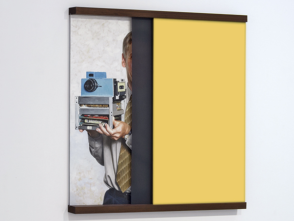 Oil on canvas, plexiglas and print on dibon, sliding on a solid wood support
