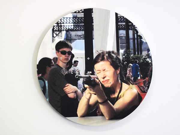 The photo-shooting gallery was once a very popular fun fair game, which my father played like many others of his generation. Based on the analogy between a camera and a gun (aiming, concentrating, shooting, triggering, reloading…), it consisted in shooting with a gun on a target and allowed the player to win his photograph. The impact of the bullet on the center of the target triggered a camera, thus allowing the shooter to get his portrait in the heat of the action, at the decisive moment of triggering. This game no longer exists in fun fairs, but it was brought up to date by the photography festival Les Rencontres d'Arles, and this is how I was able to repeat my father's gesture. Pushing the logic of equivalence between a camera and a shooting gun to the limit, our photographs reproduced on targets have been pierced by gunshots.